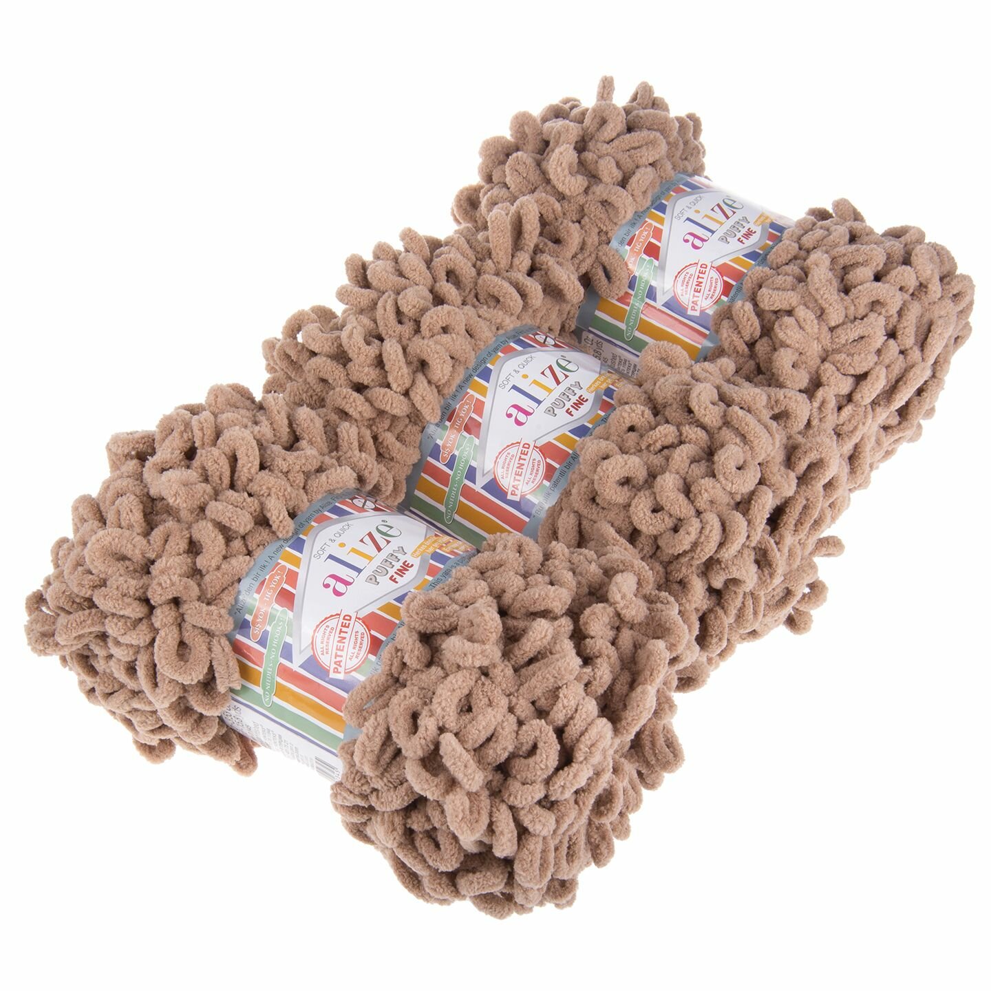 Пряжа для вязания руками с готовыми петлями ALIZE 'Puffy Fine' 100г, 14,5м (261 светло-коричневый), 5 мотков 1 427 ₽