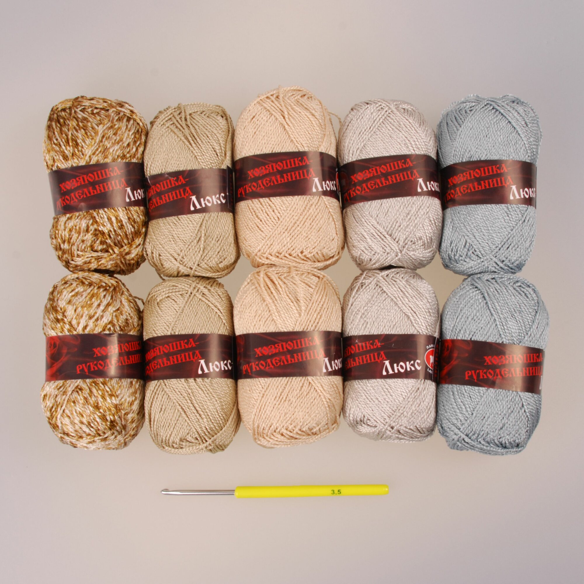 10 цен на Пряжа Хозяюшка-рукодельница Люкс №3, 50 г/140м, ассорти 10 шт + крючок №3.5