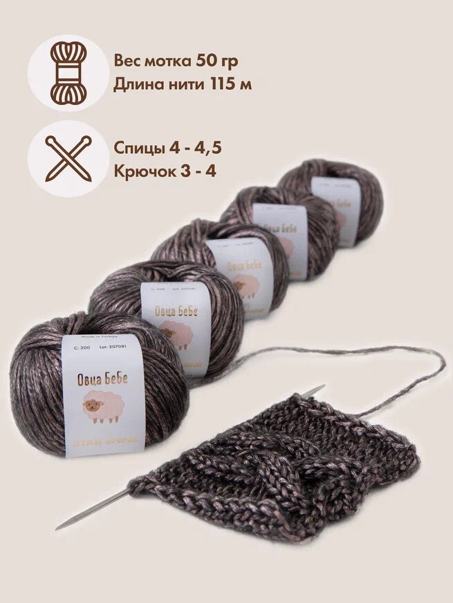 Пряжа для вязания Star Shine с эффектом люрекса, блестящая, цвет кофе с золотом (набор из 5 шт.) 1 233 ₽