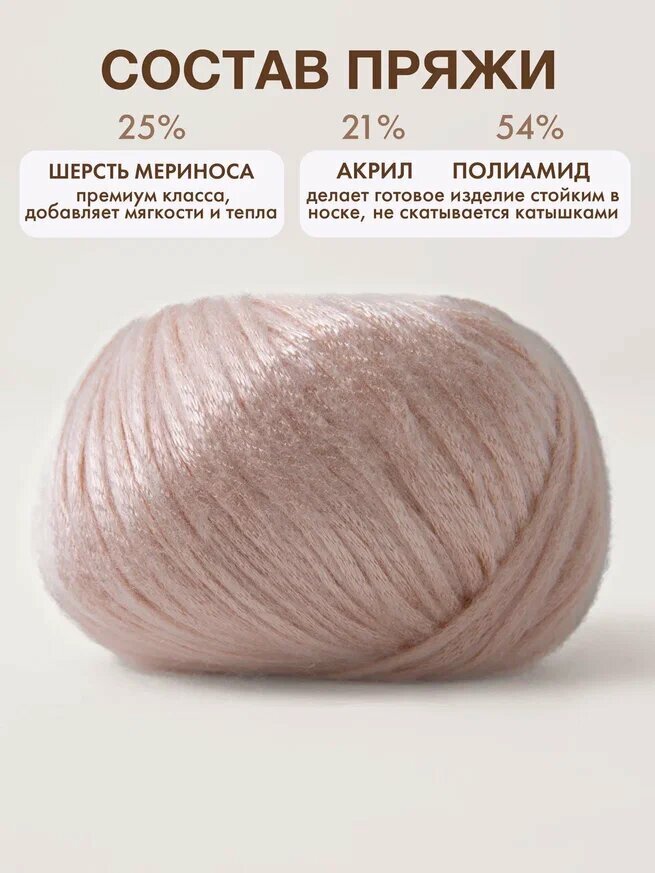 | Состав | 25% мериносовая шерсть / 21% акрил / 54% полиамид |