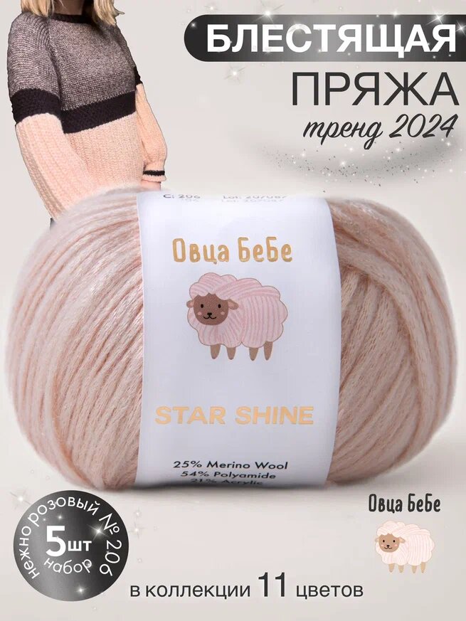 Отзывы на Пряжа для вязания Star Shine премиум с эффектом люрекса, блестящая, цвет нежно розовый (набор из 5 шт.)
