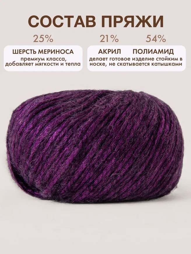 | Состав | 25% мериносовая шерсть / 21% акрил / 54% полиамид |