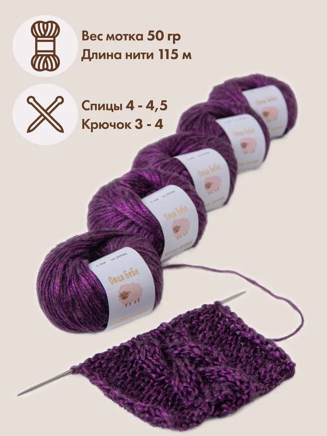 Отзывы на Пряжа для вязания Star Shine премиум с эффектом люрекса блестящая, цвет мерцающий фиолетовый (набор из 5 шт.)