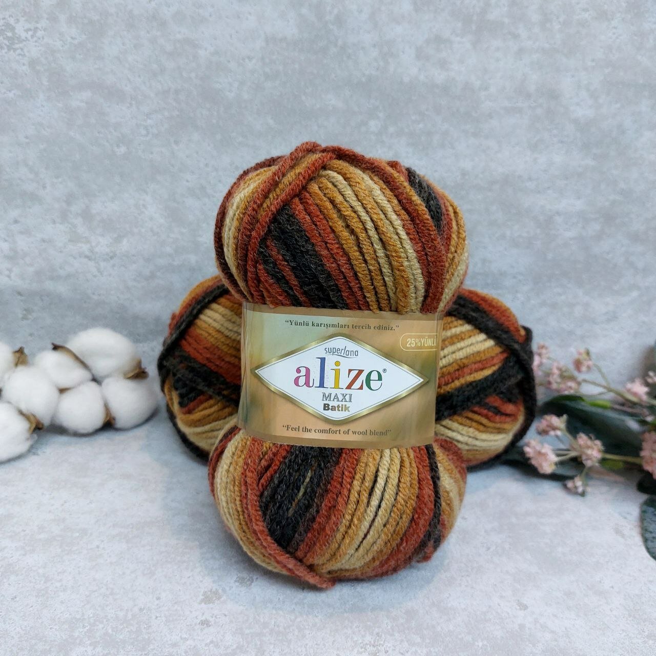 Отзывы на Пряжа Alize Superlana Maxi batik песочный-терракот-коричневый (7784), 25%шерсть/75%акрил, 100м, 100г, 3шт