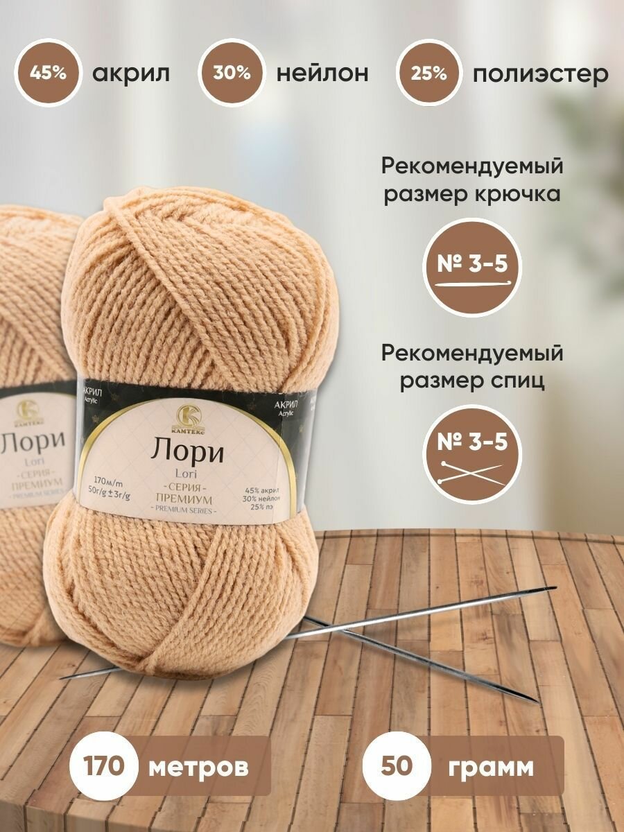 Пряжа для вязания Камтекс 'Лори', 50г, 170м (45% акрил, 30% нейлон, 25% полиэстер) (006 светло-бежевый), 5 мотков информация: