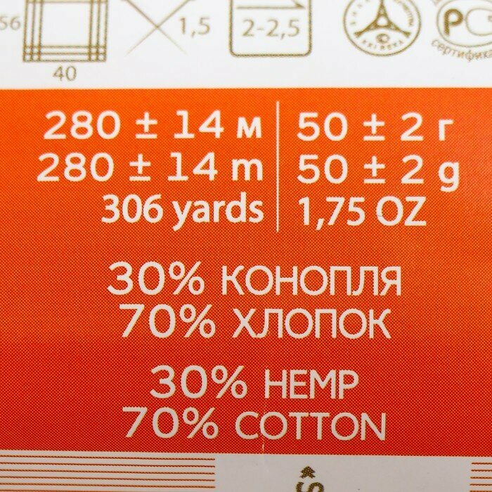 Пряжа Пехорская ПТ Конопляная 70% хлопок, 30% конопля 5 шт. х 50 г 280 м +- 14 м N1002 карамель 739 ₽