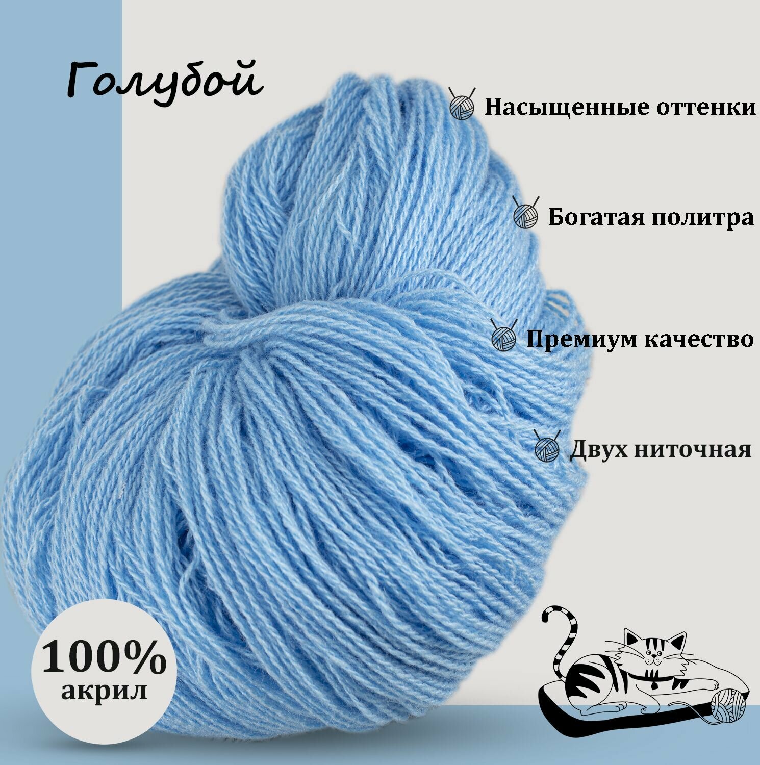 10 цен на Карачаевская пряжа мягкая в пасмах нитки 100 % акрил для вязания 600-650м/250-280гр, Голубой