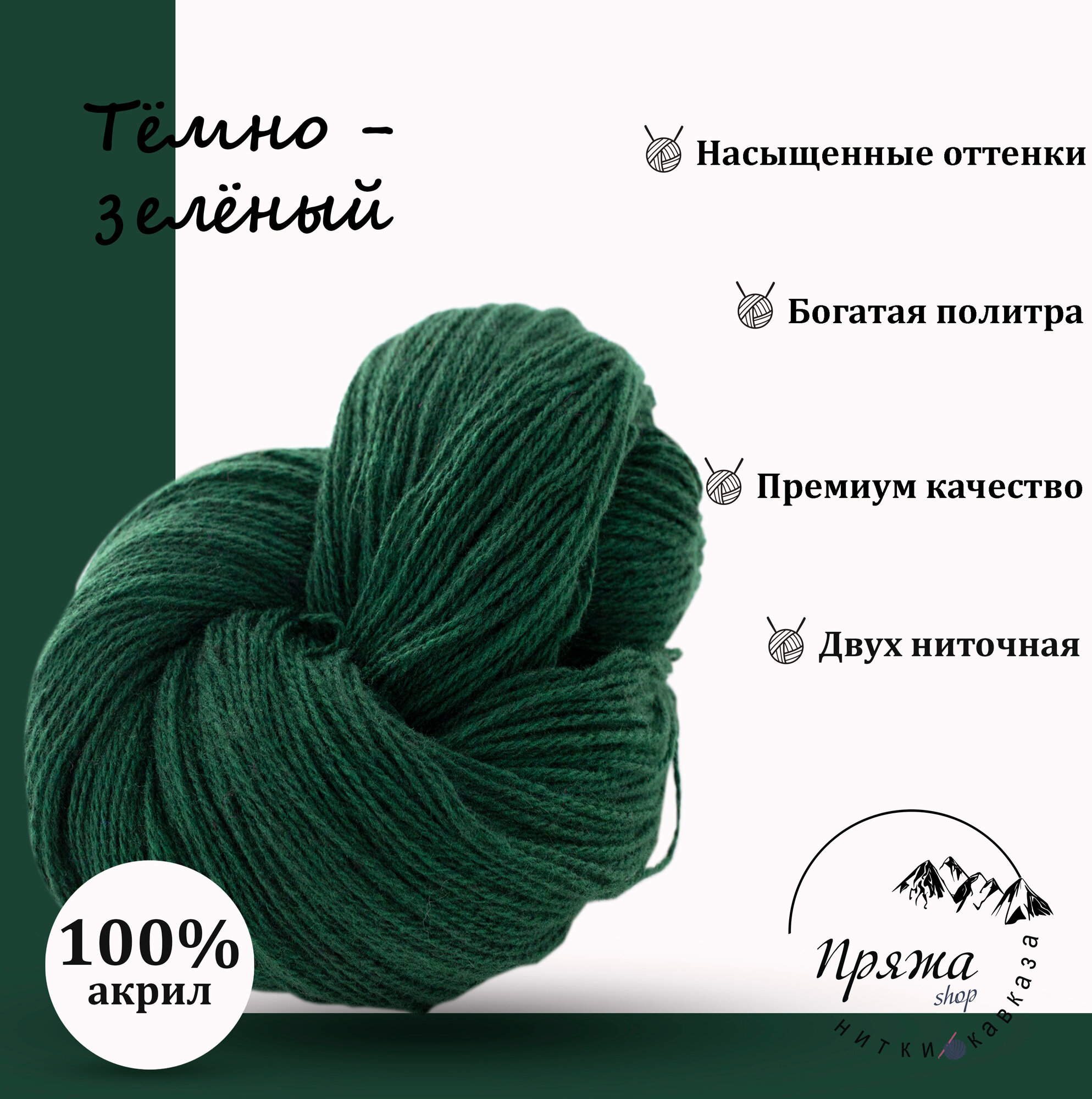 Карачаевская пряжа мягкая в пасмах нитки 100 % акрил для вязания 600-650м/250-280гр, Тёмно - зелёный информация: