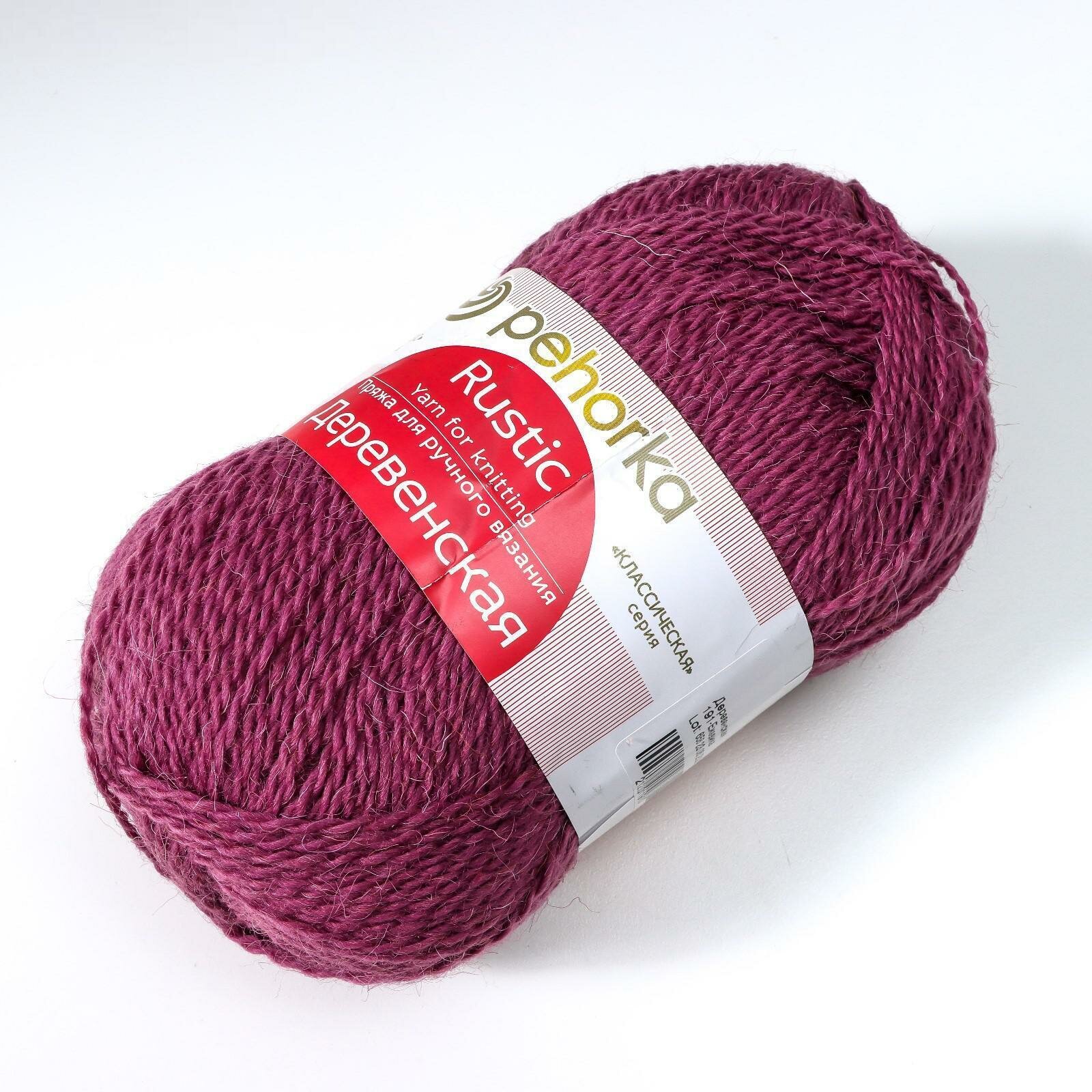 Пряжа для вязания Пехорка 'Деревенская', 100г, 250м (100% шерсть) (191-Ежевика), 10 мотков информация: