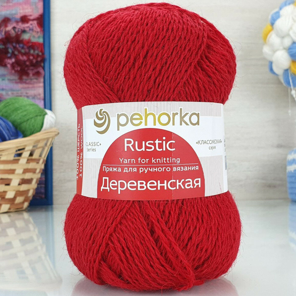 Пряжа для вязания Пехорка 'Деревенская', 100г, 250м (100% шерсть) (88-Красный мак) 10 мотков информация: