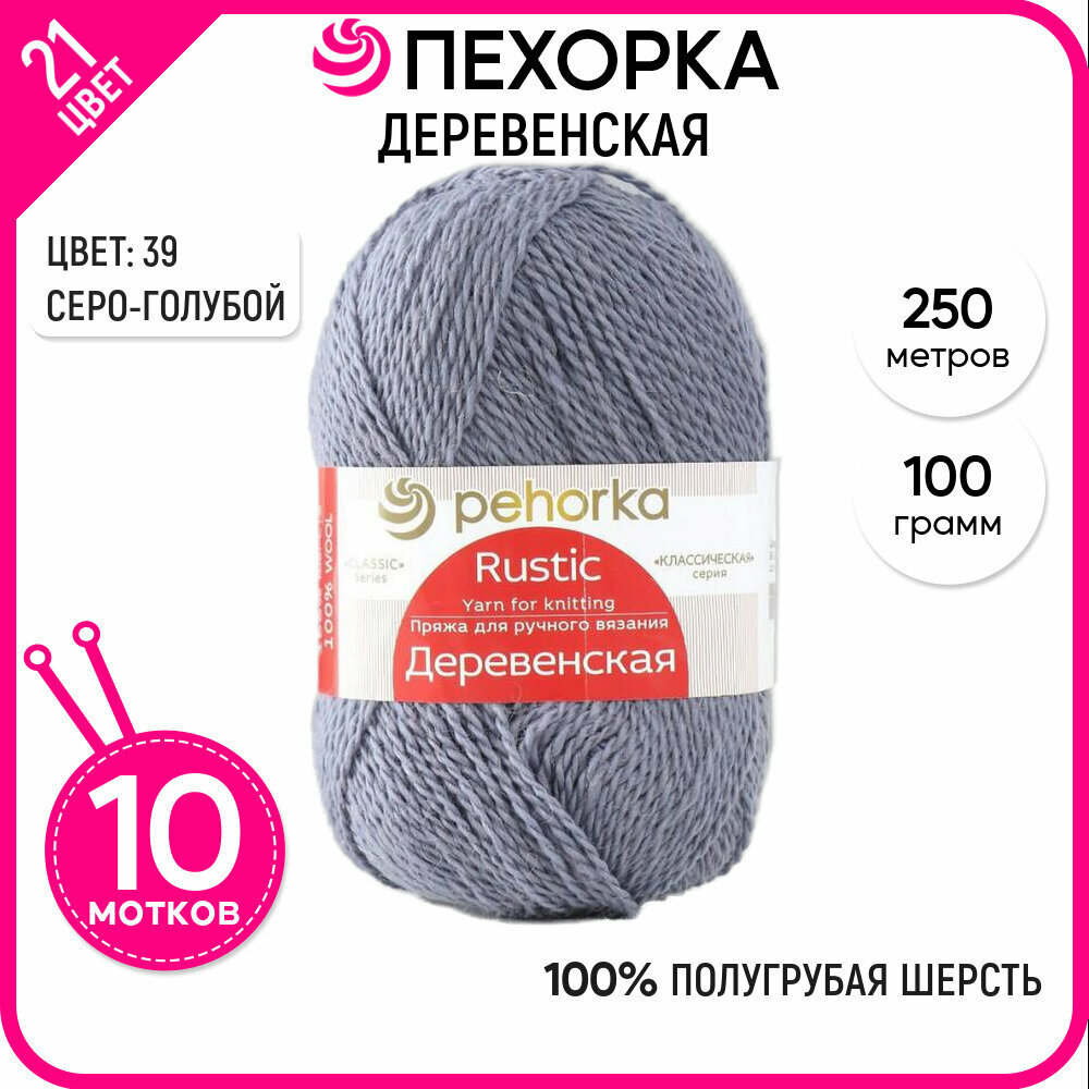 Пряжа для вязания Пехорка "Деревенская" 10 шт, Серо-голубой №39 информация: