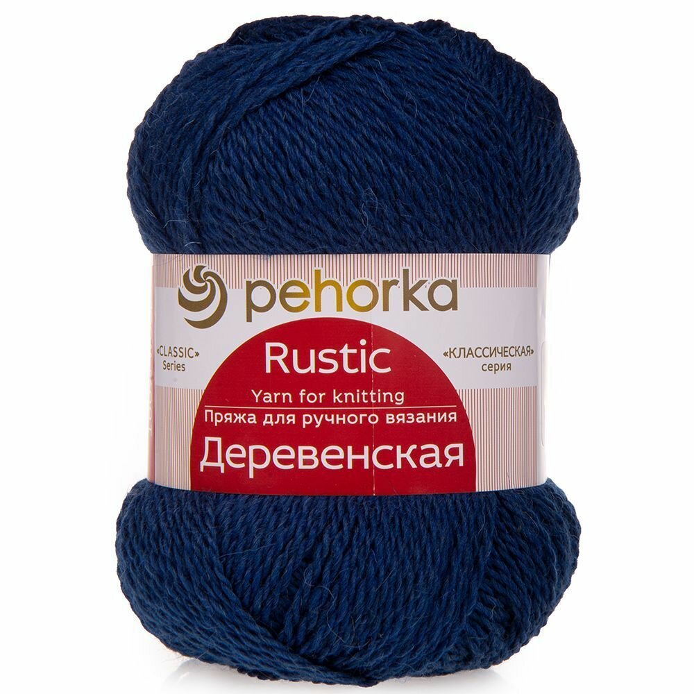 Пряжа Пехорка Деревенская цвет 04 темно-синий (100г/250м, упаковка 10 мотков) 2 540 ₽
