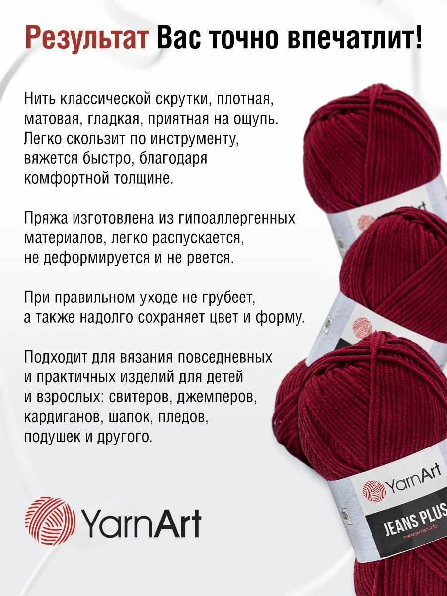Пряжа для вязания YarnArt 'Jeans Plus', 100г, 160м (55% хлопок, 45% полиакрил) (66 бордо), 5 мотков информация: