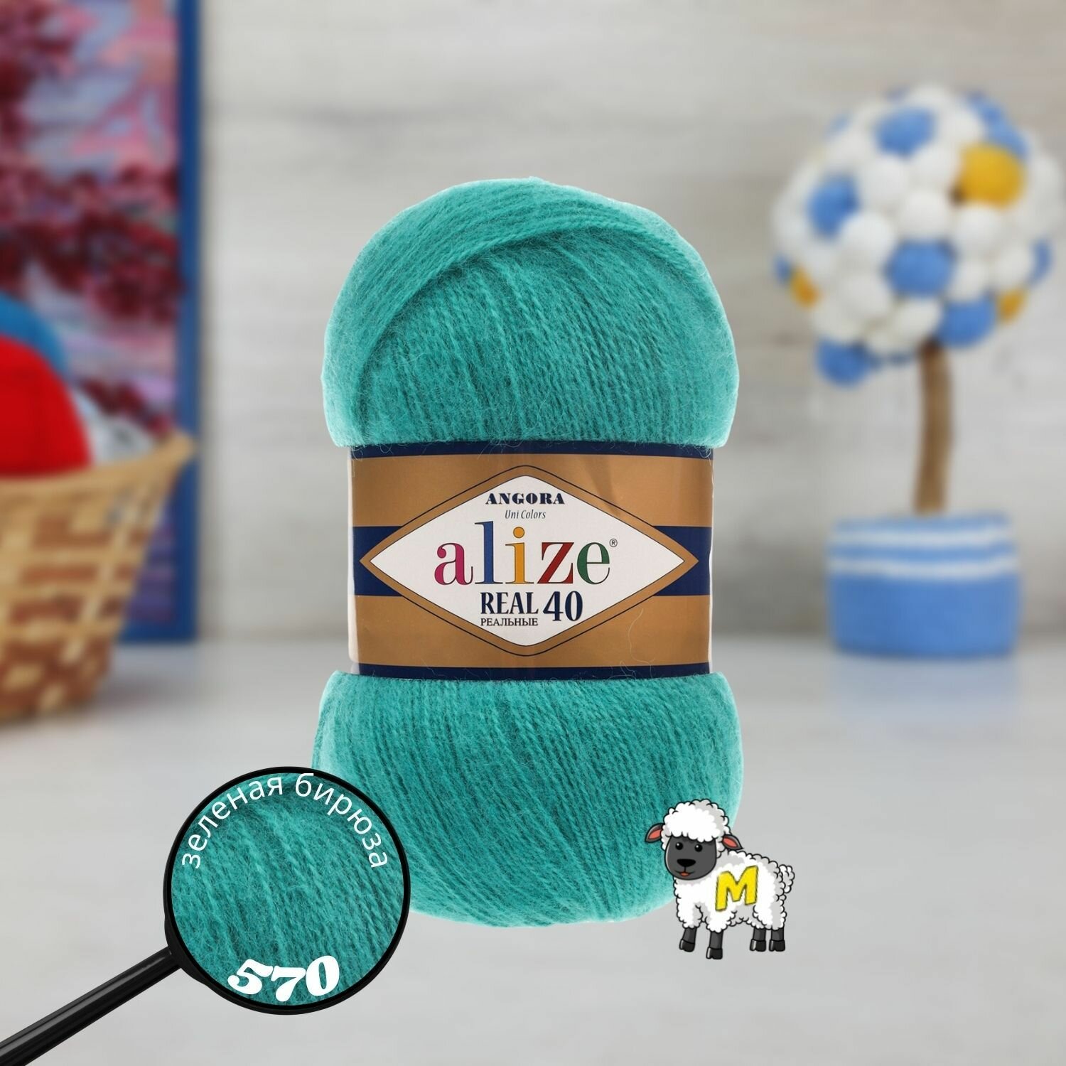 10 цен на Пряжа Alize Angora Real 40 светлый изумруд (570), 60%акрил/40%шерсть, 430м, 100г, 5шт