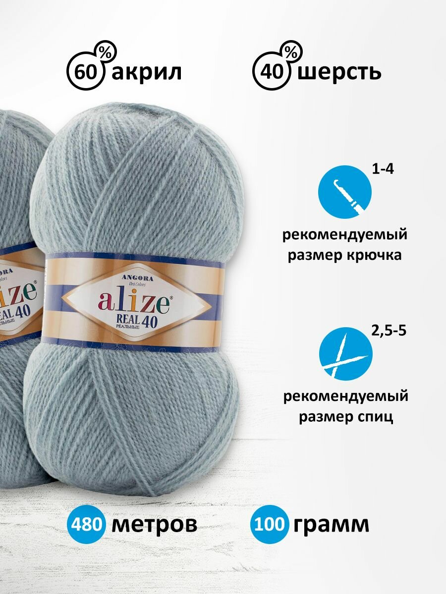 Пряжа для вязания ALIZE 'Angora real 40' 100 гр. 430м (40% шерсть, 60% акрил) (575 серо-голубой), 5 мотков информация: