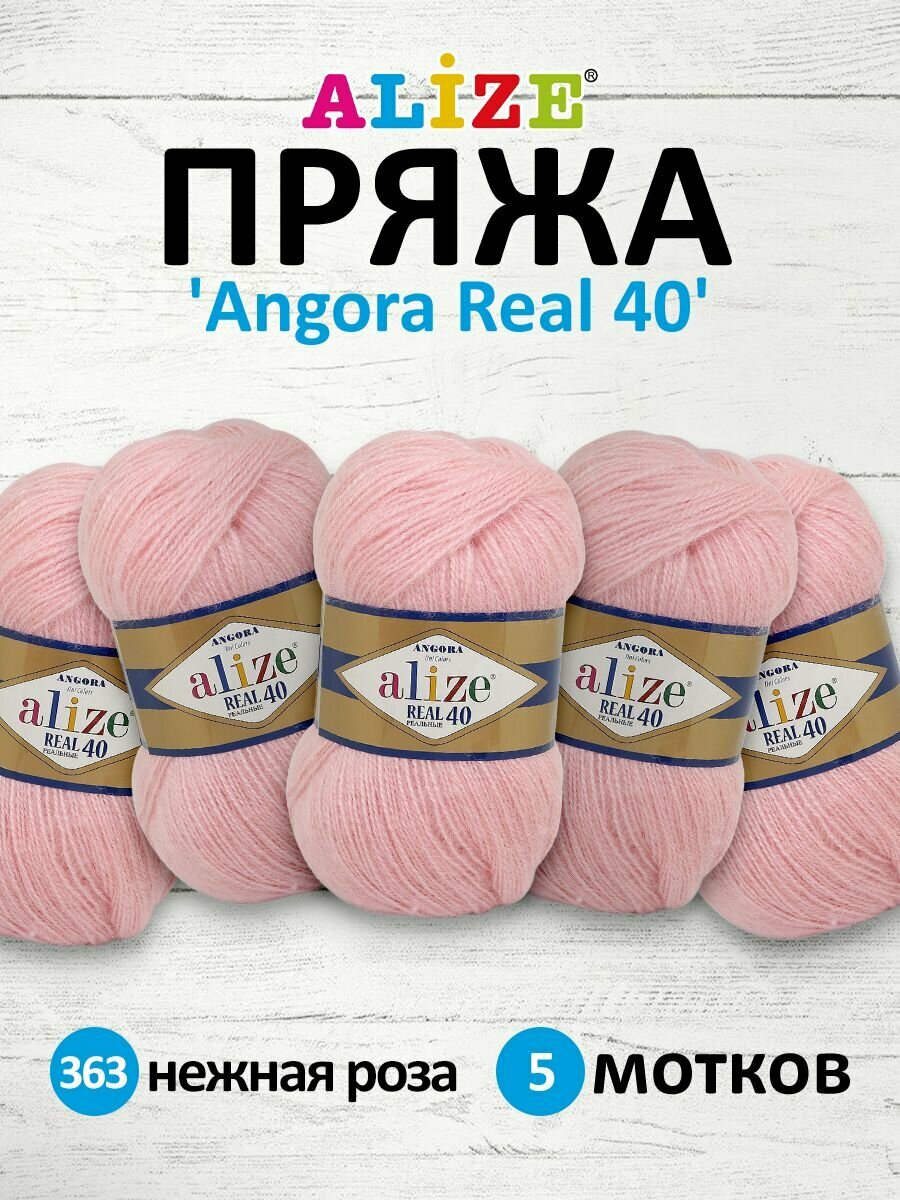 10 цен на Пряжа Alize Angora Real 40 нежная роза (363), 60%акрил/40%шерсть, 430м, 100г, 5шт