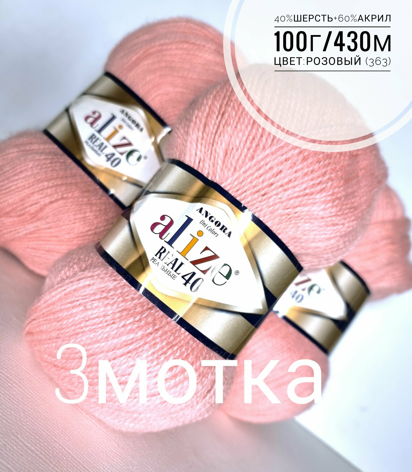 Отзывы на Пряжа Alize Angora Real 40 нежная роза (363), 60%акрил/40%шерсть, 430м, 100г, 3шт