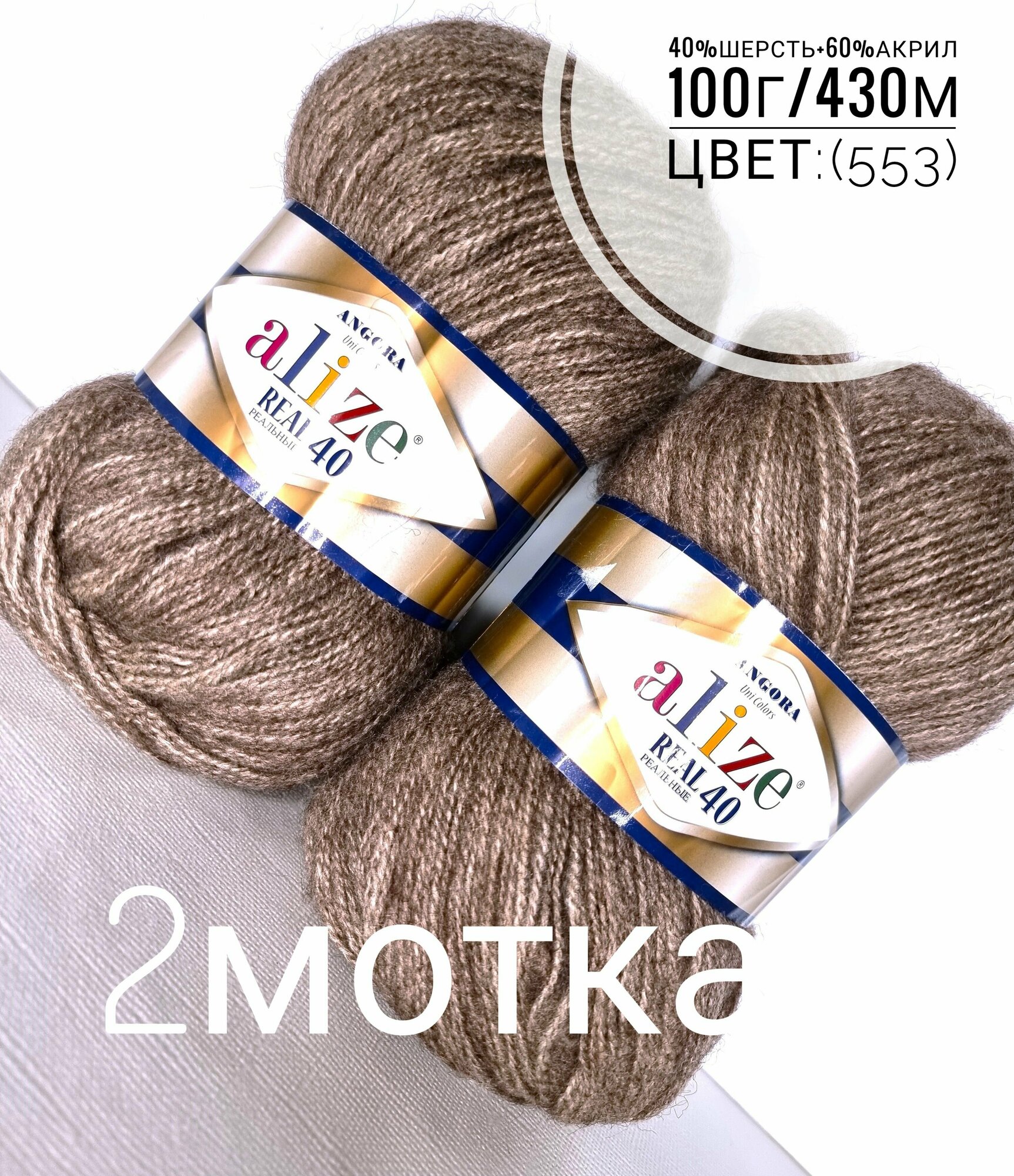 Отзывы на Пряжа Alize Angora Real 40 бежевый меланж (553), 60%акрил/40%шерсть, 430м, 100г, 2шт