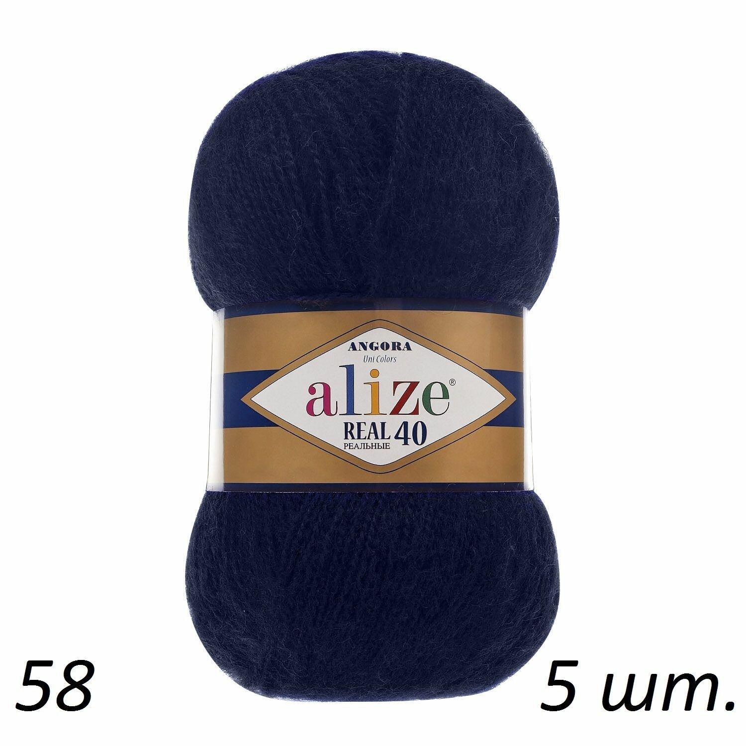 Пряжа ALIZE ANGORA REAL 40, т. синий - 58, 40% шерсть, 60% акрил, 5 мотков, 100 г, 430 м. 1 494 ₽