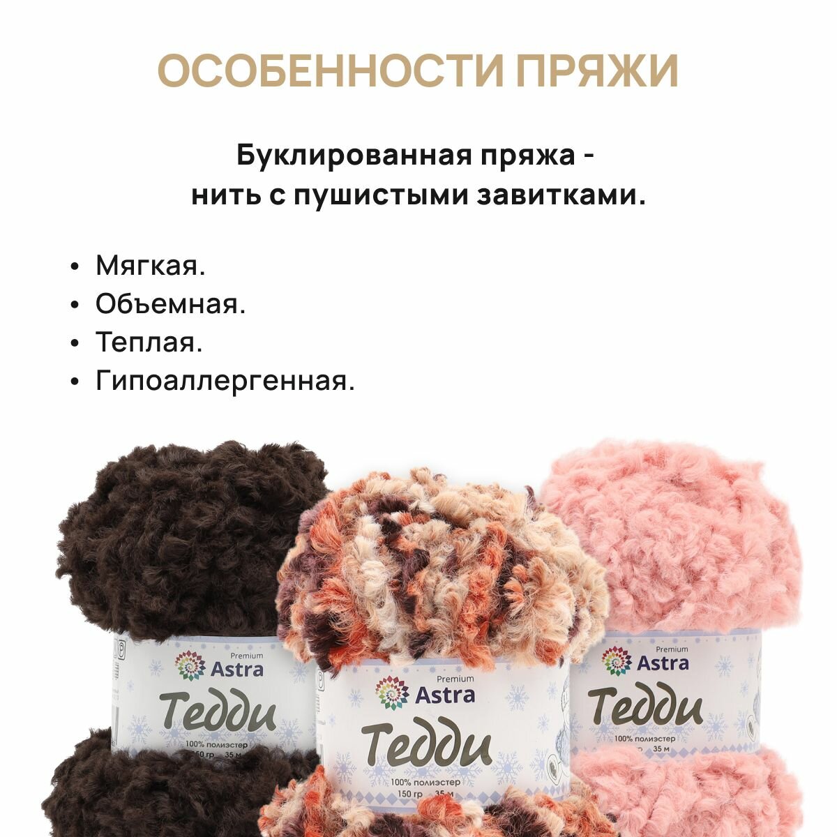 Пряжа для вязания Astra Premium 'Тедди' букле, 150г, 35м (100% полиэстер) (07 коричневый) 498 ₽