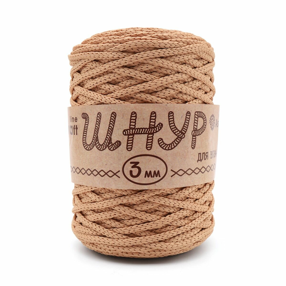 Пряжа для вязания Astra Premium 'Шнур для вязания 3 мм', 200г, 100м (100% полиэфир) (805 бежевый), 3 мотка информация: