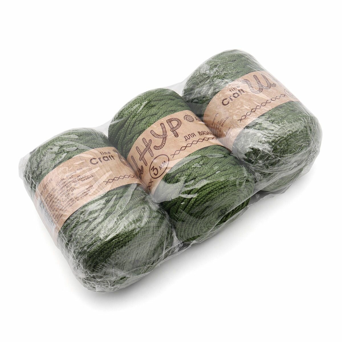 Пряжа для вязания Astra Premium 'Шнур для вязания 3 мм' 200г, 100м (100% полиэфир) (490 хаки), 3 мотка 996 ₽