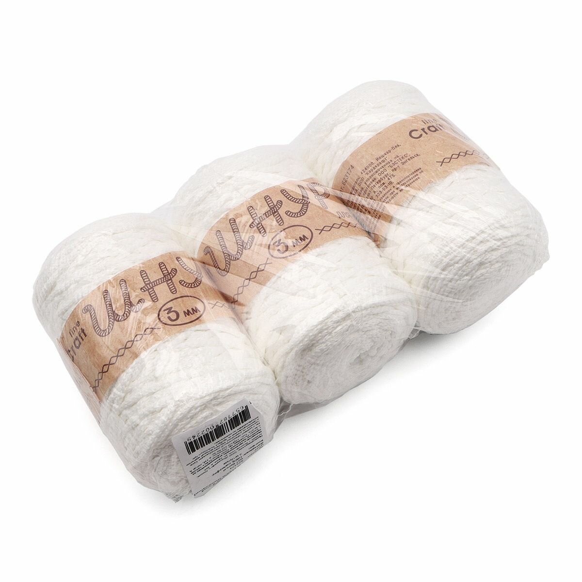 Пряжа для вязания Astra Premium 'Шнур для вязания 3 мм' 200г, 100м (100% полиэфир) (001 белый), 3 мотка 1 105 ₽