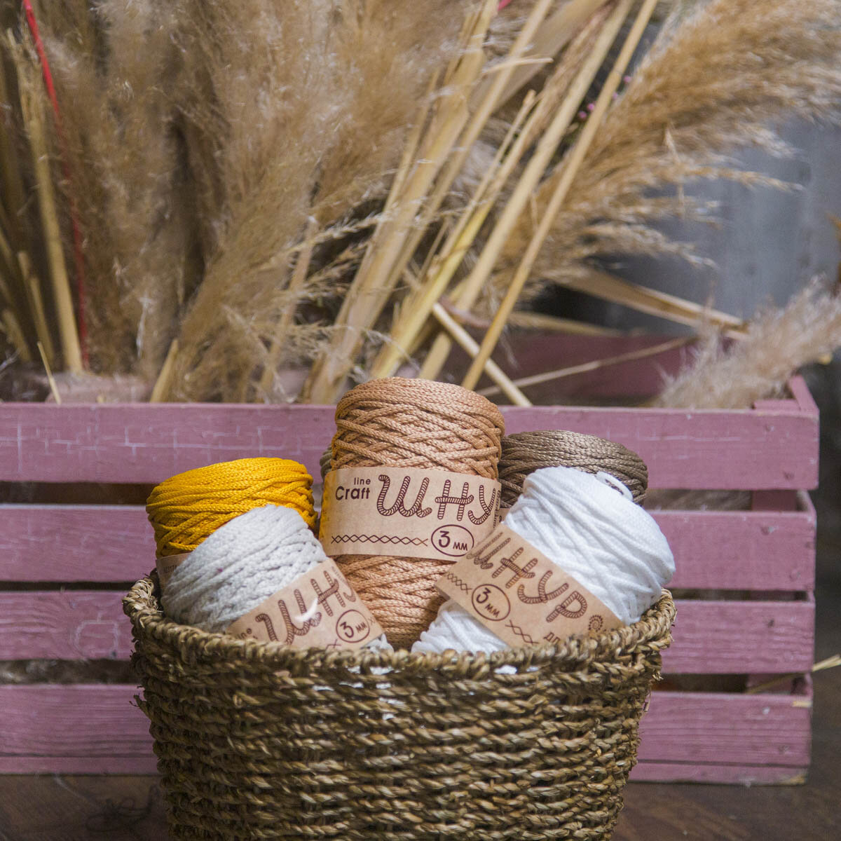 Пряжа для вязания Astra Premium 'Шнур для вязания 3 мм', 200г, 100м (100% полиэфир) (110 розовый), 3 мотка 1 116 ₽