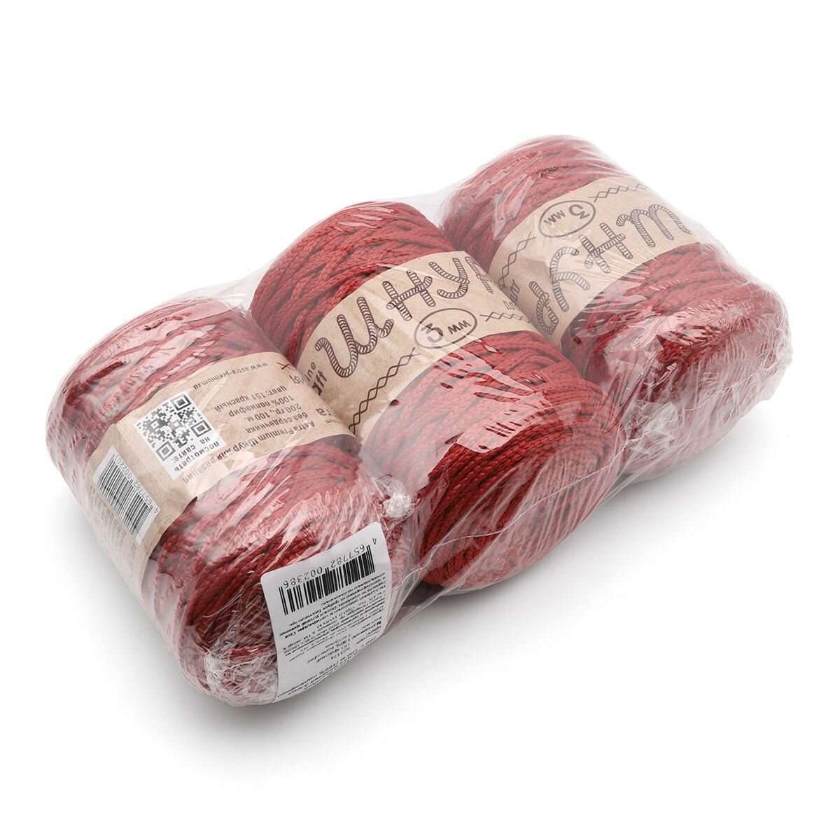 Пряжа для вязания Astra Premium 'Шнур для вязания 3 мм', 200г, 100м (100% полиэфир) (190 бордо), 3 мотка 1 165 ₽
