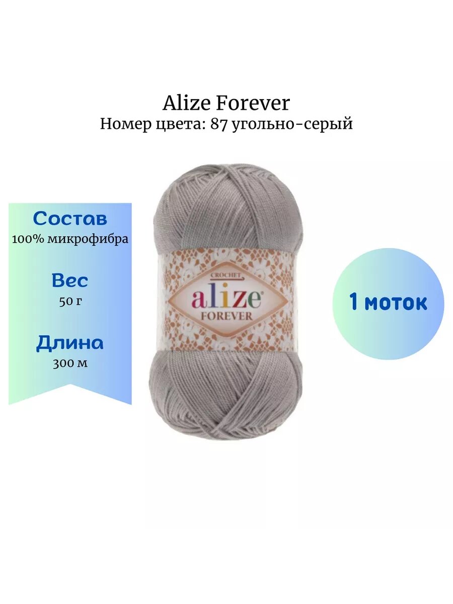10 цен на Пряжа Alize Forever угольно-серый (87), 100%акрил, 300м, 50г, 1шт