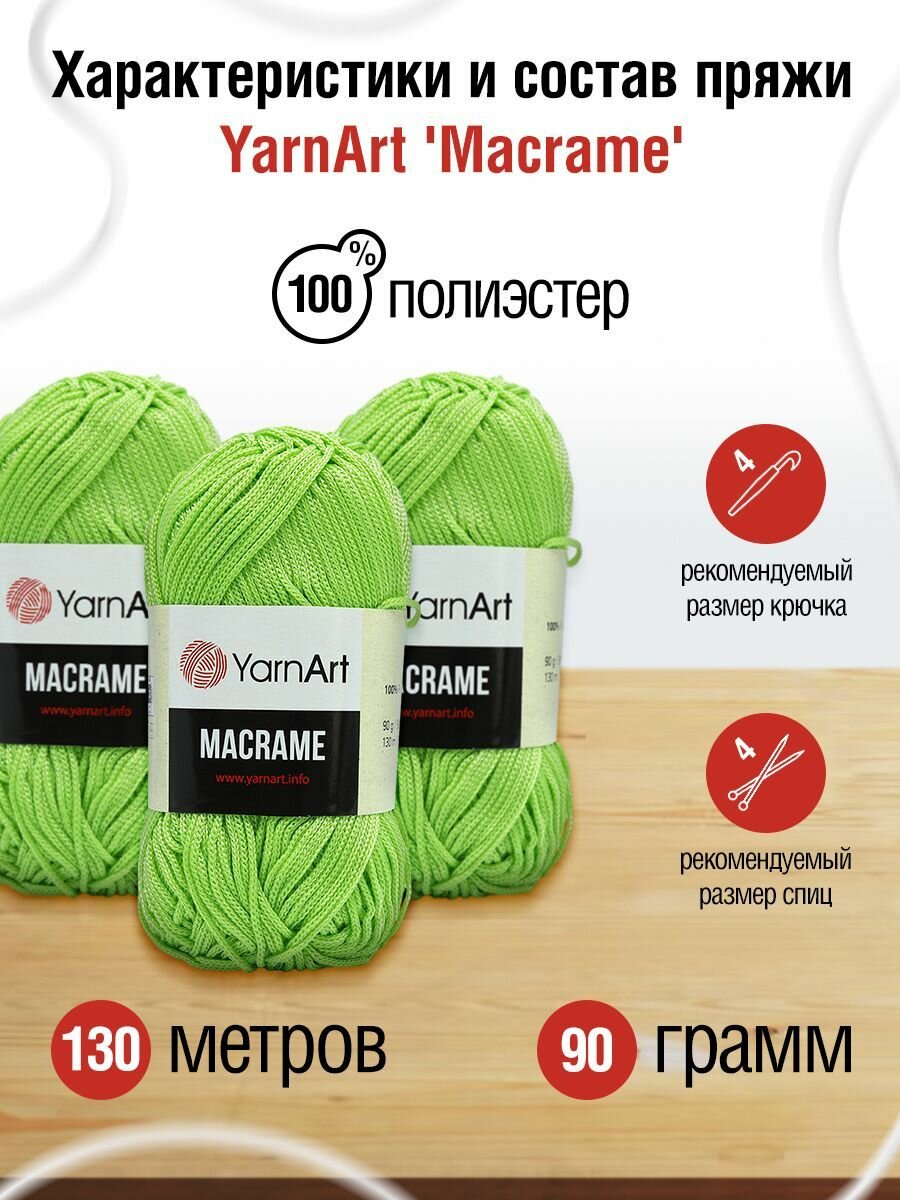 Пряжа для вязания YarnArt 'Macrame' 90гр 130м (100% полиэстер) (150 светло-зеленый), 6 мотков информация: