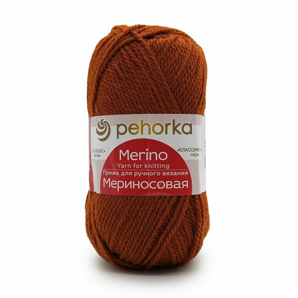 Пряжа Пехорка Мериносовая коричневый (251), 50%шерсть мериноса/50%акрил, 200м, 100г, 1шт