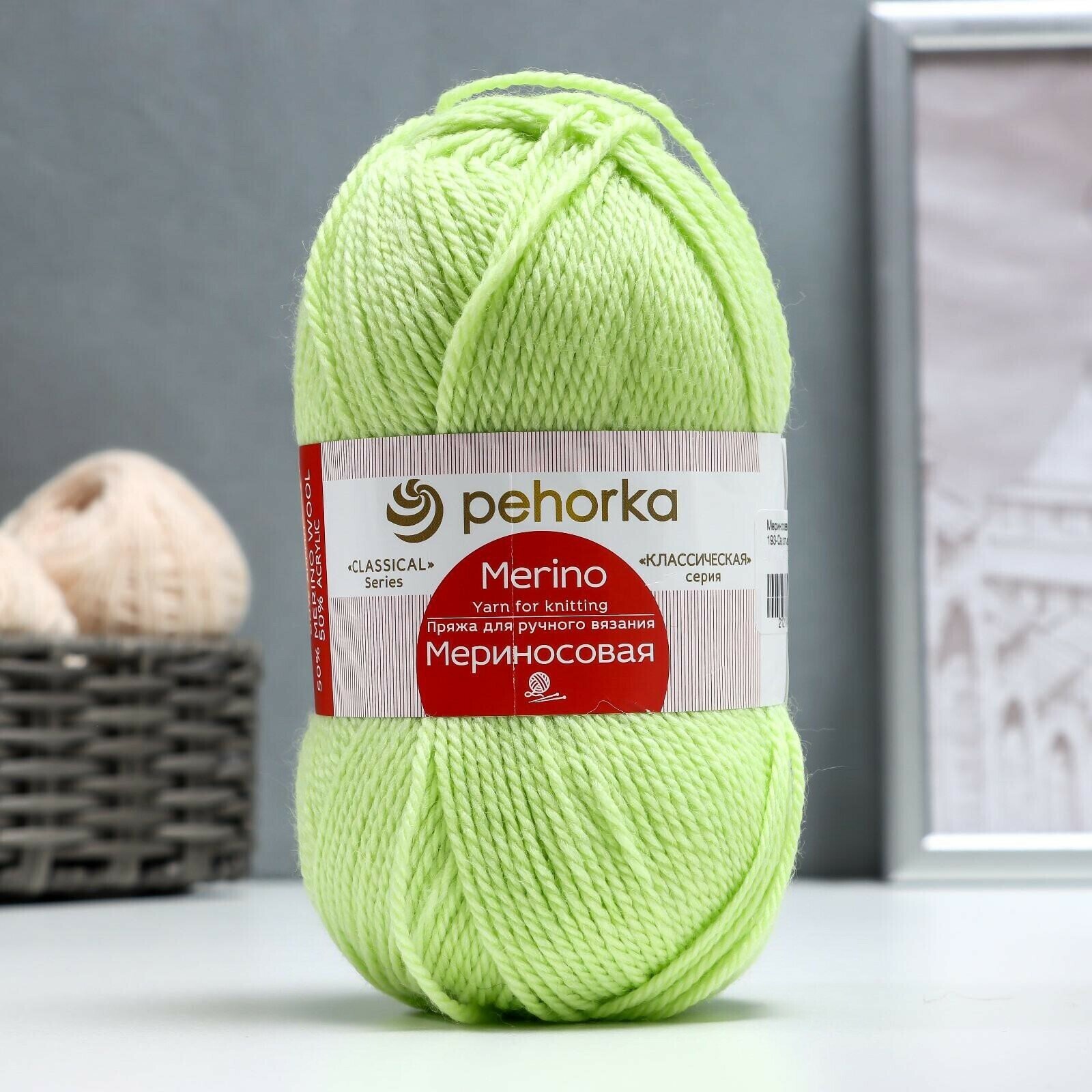 Пряжа Пехорка Мериносовая светло-салатовый (193), 50%шерсть мериноса/50%акрил, 200м, 100г, 1шт