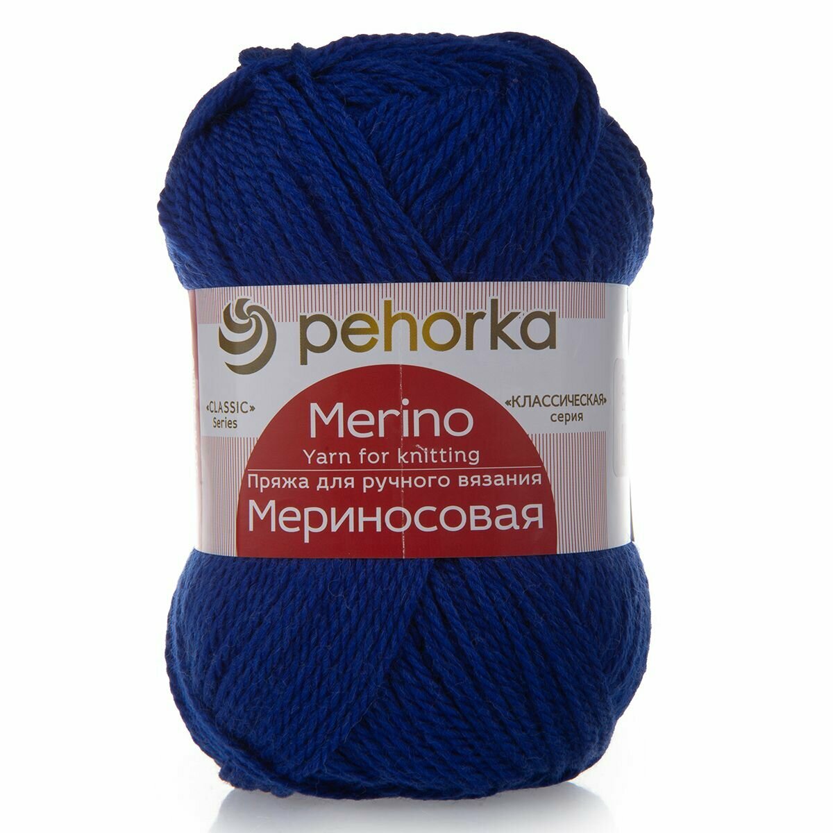 Пряжа Пехорка "Мериносовая" - 1 шт, цвет: 491-Ультрамарин, 200м/100г, 50% мериносовая шерсть, 50% акрил