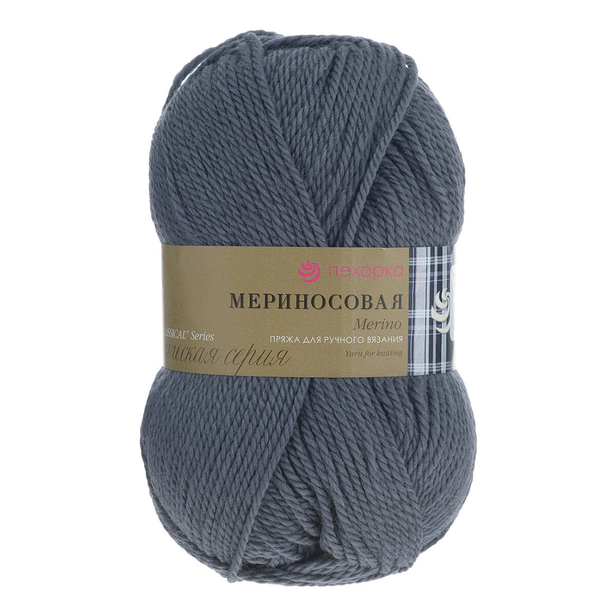 Пряжа для вязания Пехорка 'Мериносовая', 100г, 200м (50% шерсть, 50% акрил) (393-Светлый маренго), 10 мотков информация: