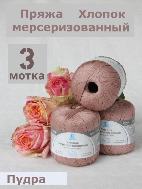 10 цен на Пряжа Камтекс "Хлопок мерсеризованный", цвет: 067 - Пудра, 3 шт., хлопок 100%, 50 г. 200 м.