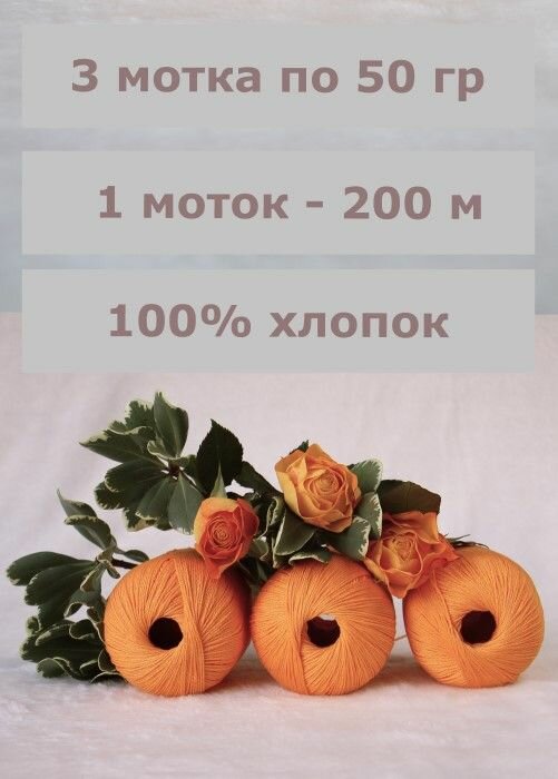 10 цен на Пряжа Камтекс "Хлопок мерсеризованный", цвет: 035 - Оранжевый, 3 шт., хлопок 100%, 50 г. 200 м.