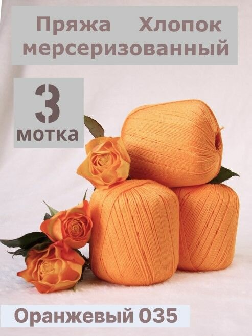 Пряжа Камтекс "Хлопок мерсеризованный", цвет: 035 - Оранжевый, 3 шт., хлопок 100%, 50 г. 200 м. информация: