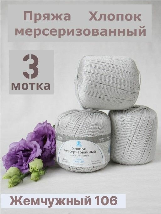 Пряжа Камтекс "Хлопок мерсеризованный", цвет: 106 - Жемчужный, 3 шт., хлопок 100%, 50 г. 200 м. информация: