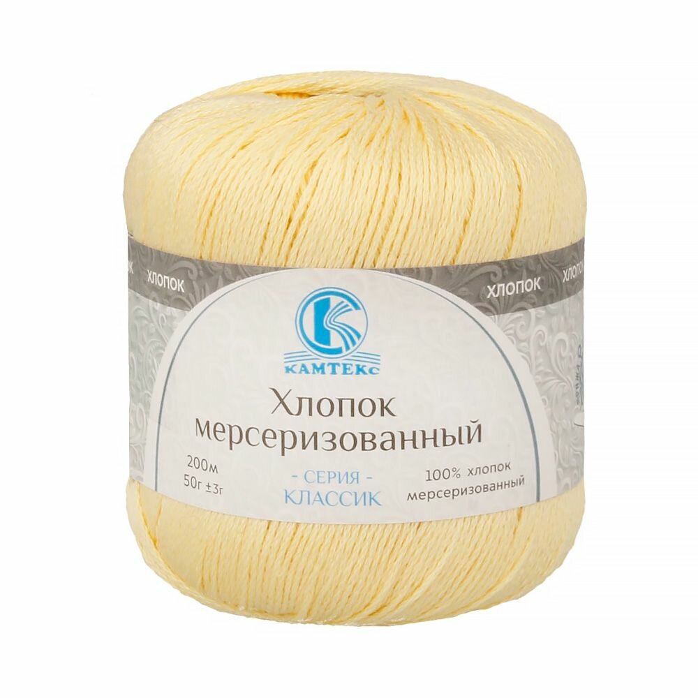 Пряжа для вязания Камтекс Хлопок мерсеризованный 031 шампанское 50 гр/200 м 100% мерсеризованный хлопок 504 ₽