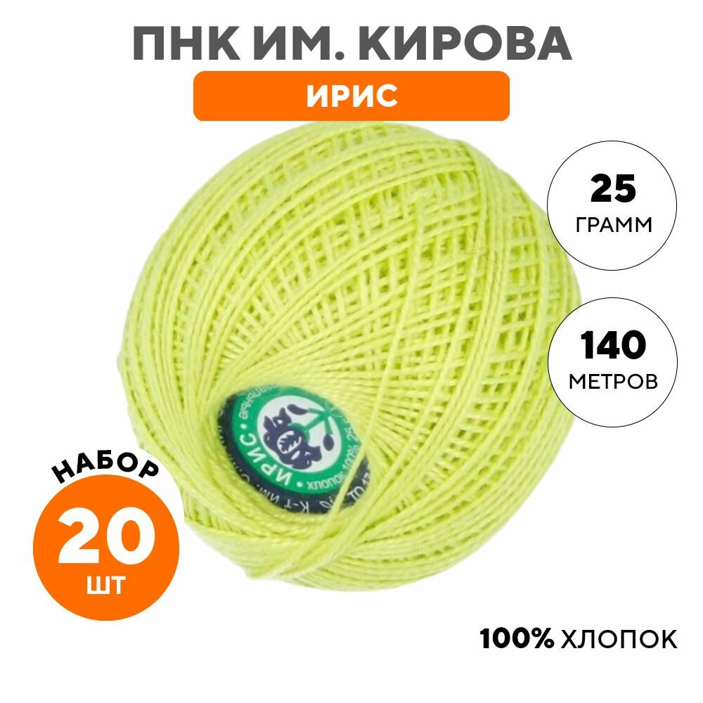 Нитки вязальные ПНК им. Кирова Ирис", 100% хлопок, 20 шт по 25 г, 150 м, цвет 4506, зеленый (ирис.4506)