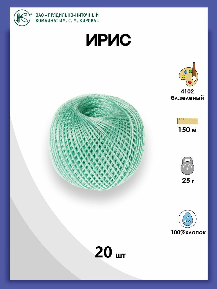 Нитки для вязания и плетения 'ирис' (100% хлопок), 25г, 150м (4102 бледно-зеленый), 20 мотков информация: