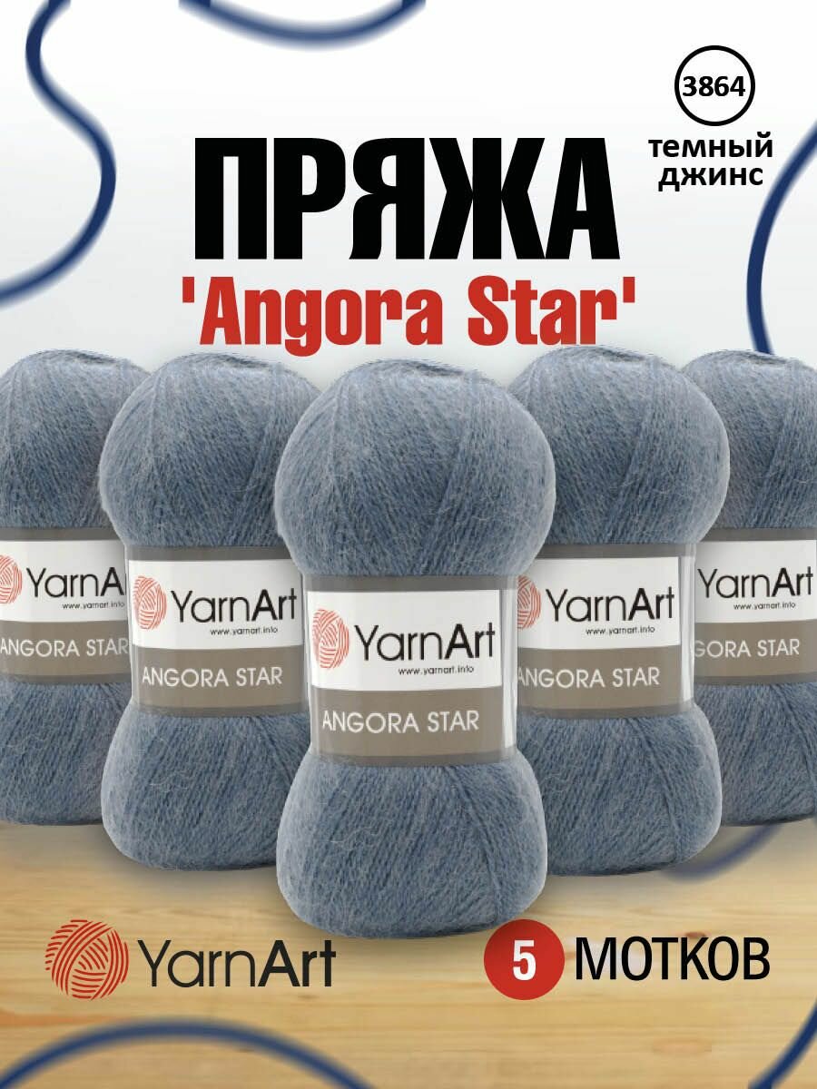 Пряжа для вязания YarnArt 'Angora Star' 100г, 500м (20% тонкая шерсть, 80% акрил) (3864 темный джинс), 5 мотков