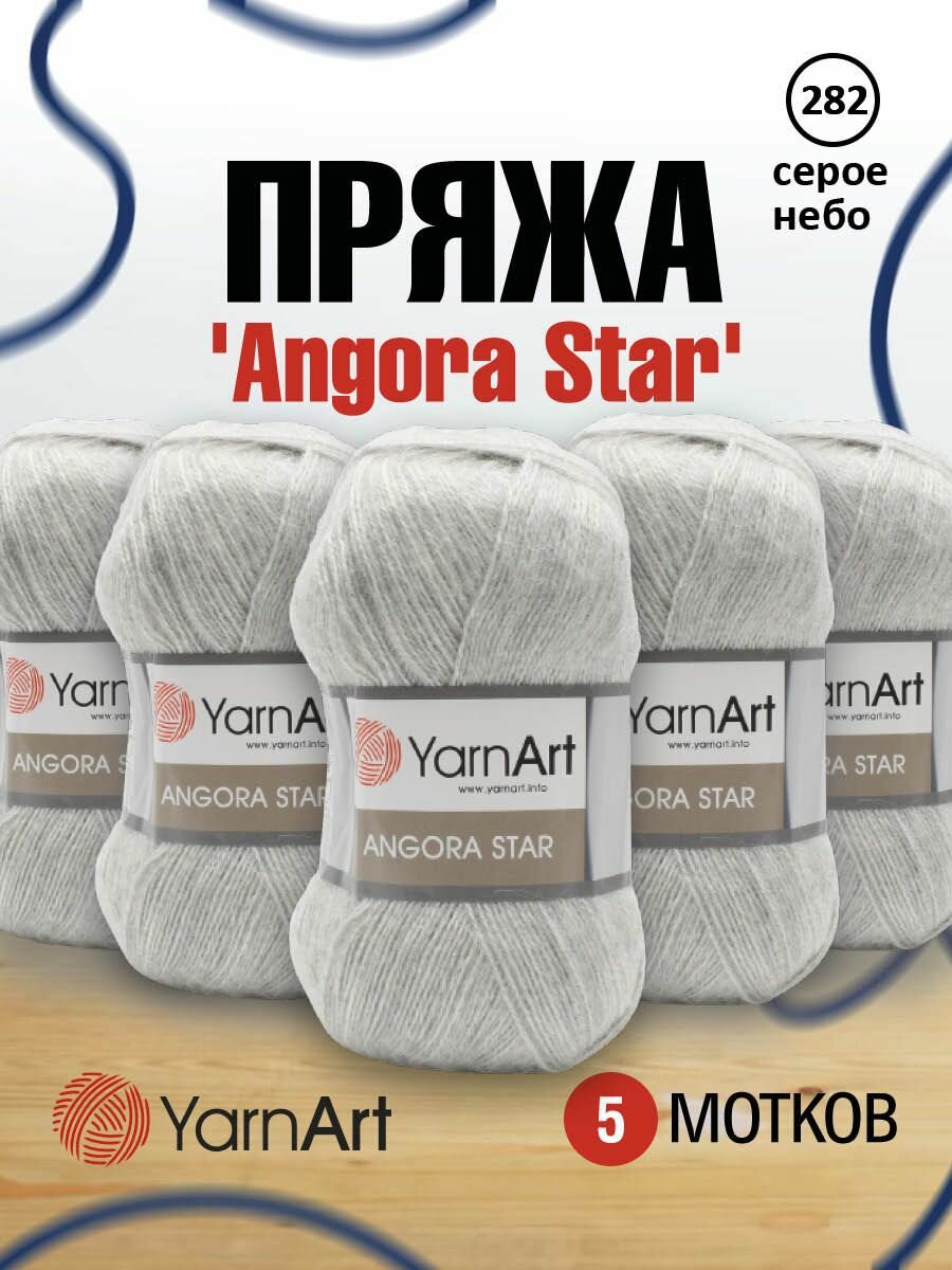 10 цен на Пряжа Yarnart Angora Star светло-серый (282), 20%шерсть/80%акрил, 500м, 100г, 5шт