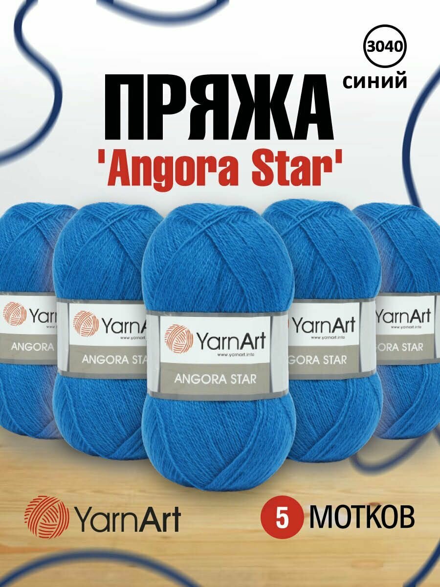 Пряжа для вязания YarnArt 'Angora Star' 100гр 500м (20% тонкая шерсть, 80% акрил) (3040 синий), 5 мотков