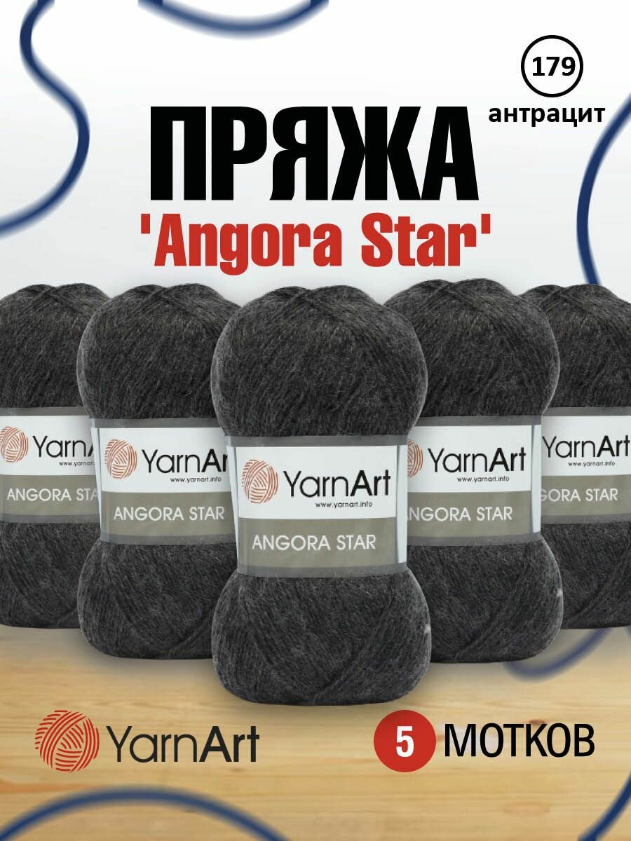 10 цен на Пряжа Yarnart Angora Star темно-серый (179), 20%шерсть/80%акрил, 500м, 100г, 5шт