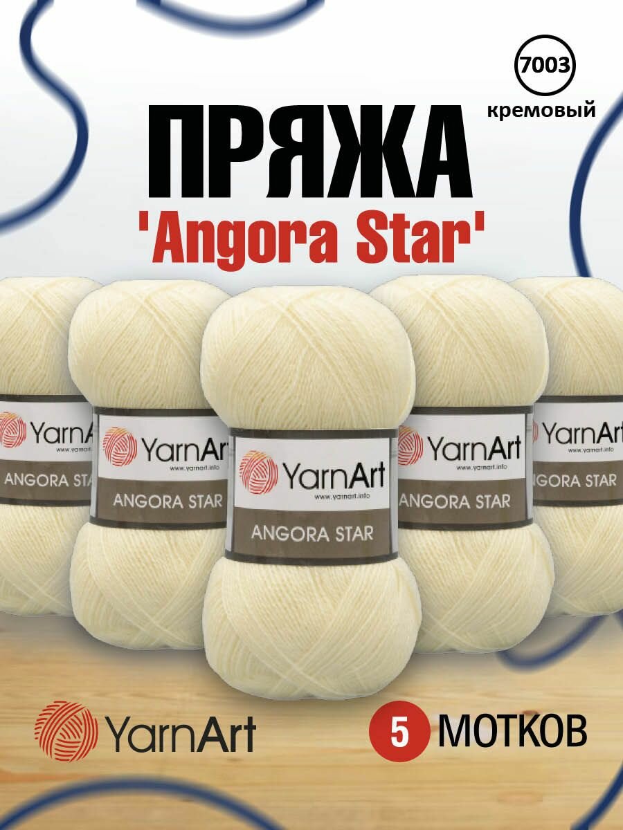 Пряжа для вязания YarnArt 'Angora Star' 100гр 500м (20% тонкая шерсть, 80% акрил) (7003 кремовый), 5 мотков информация: