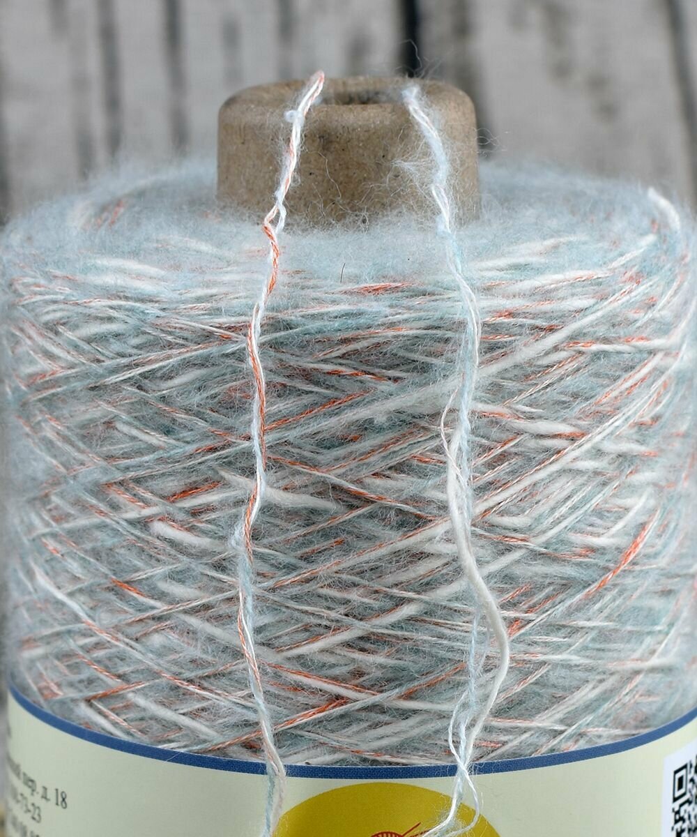Пряжа. Хлопок FLAME на бобине, 50% хлопок, 26% шерсть, 20/2/2, 100гр/500мет. цв. 007 МЯТА-РЫЖИЙ-БЕЛЫЙ (вес 300гр.) информация: