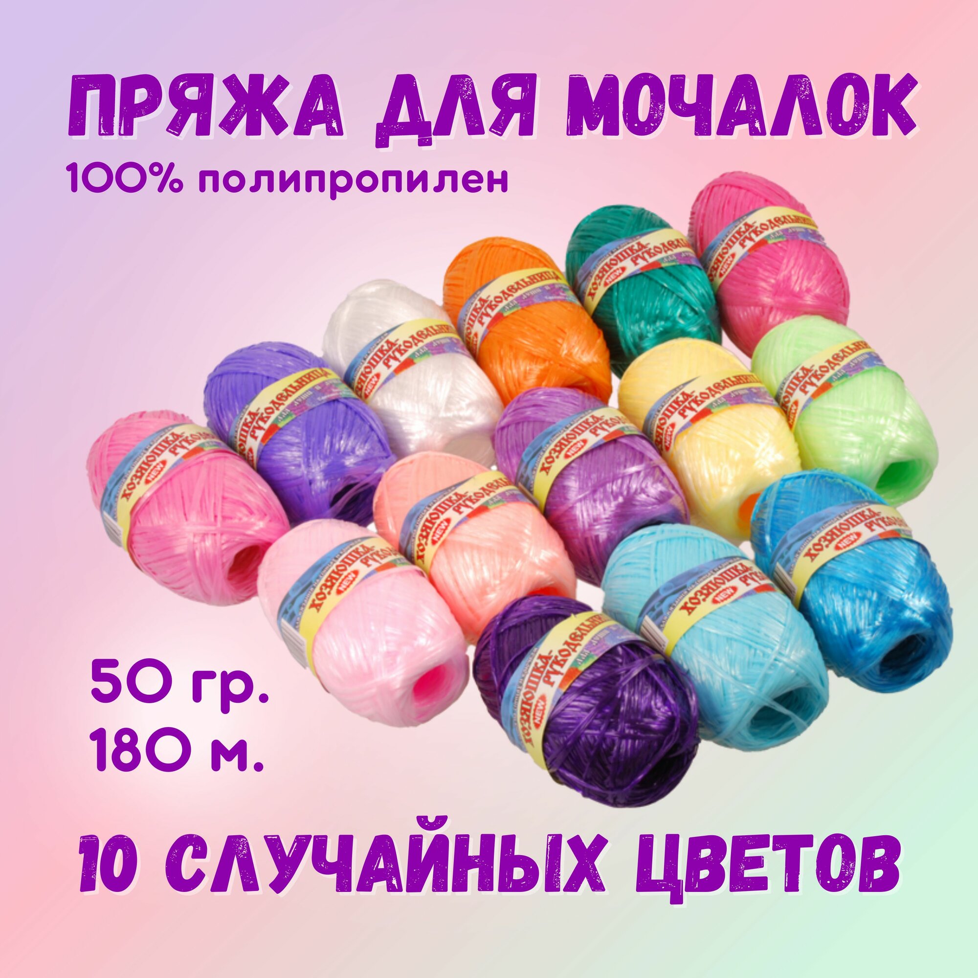 10 цен на Пряжа для вязания мочалок/ Хозяюшка-рукодельница Для души и душа, ассорти, 50 г, 180 м, 10 шт