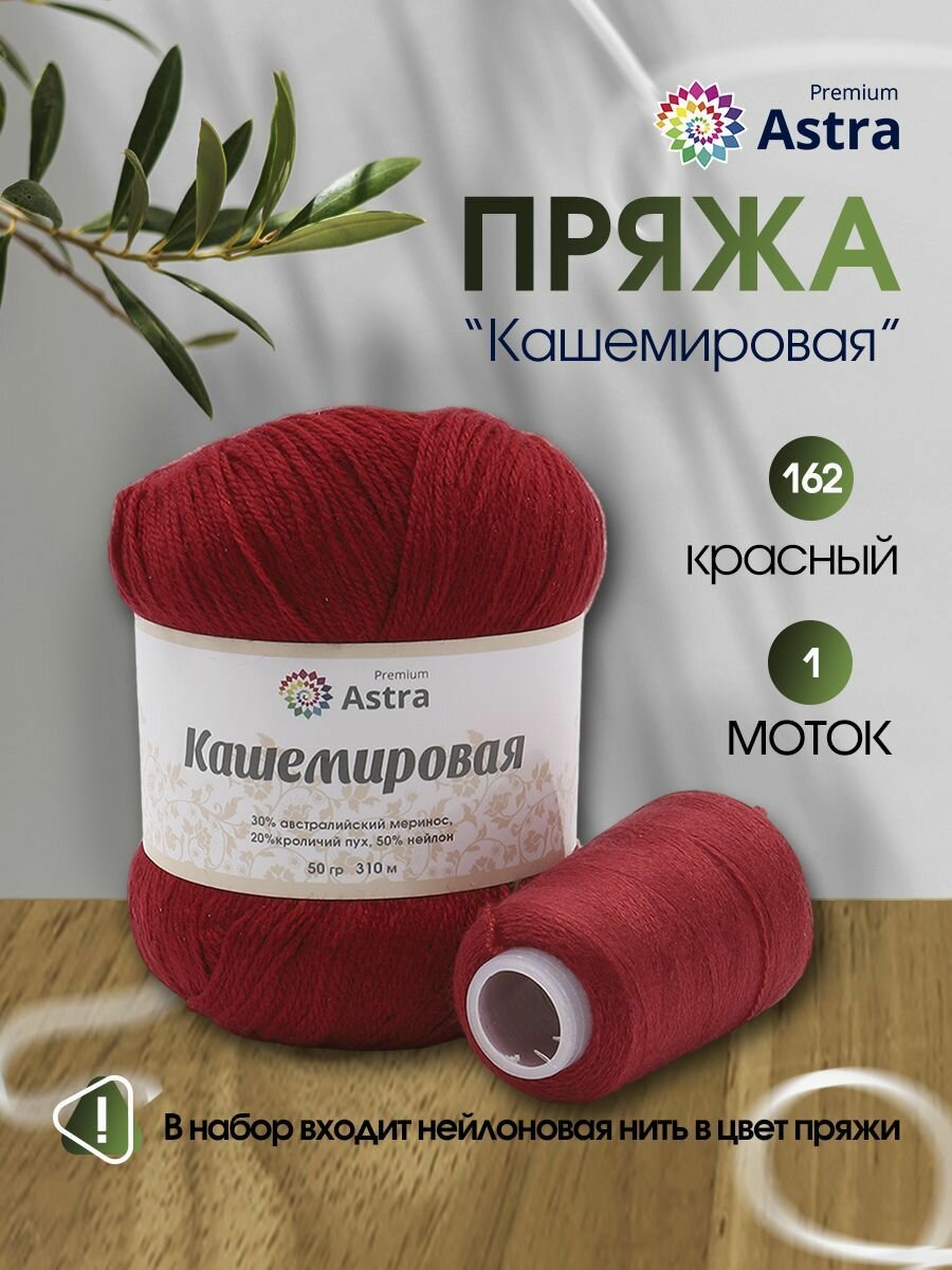 Пряжа для вязания Astra Premium 'Кашемировая' 50г, 310м +нить 20г (пух кролика, меринос, нейлон) (162 красный)